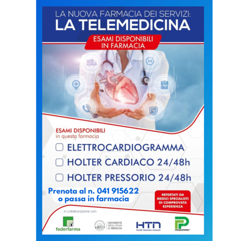 Sono inoltre attivi i nuovi servizi di TELEMEDICINA: HOLTER CARDIACO e PRESSORIO 24/48 h, da poter eseguire privatamente o in convenzione con ricetta bianca del medico. In questo modo abbattiamo le lunghe liste d’attesa delle strutture ospedaliere, facilitando l’accessibilità agli esami.