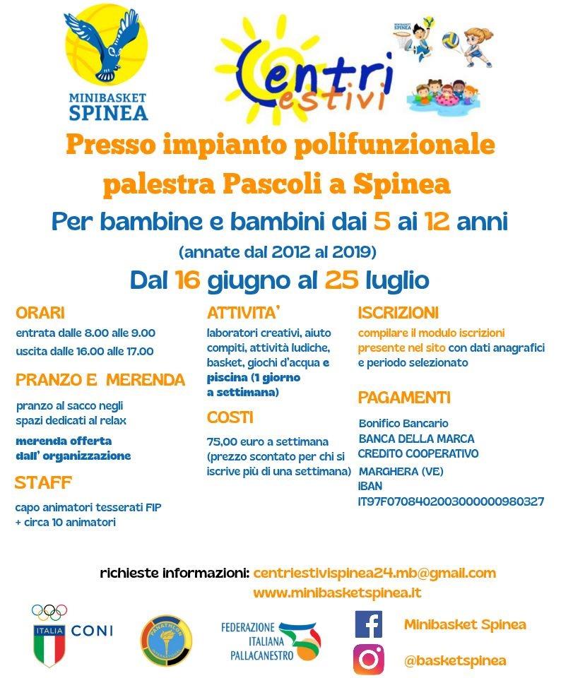 Anche quest'anno ripartono i Centri Estivi Minibasket Spinea